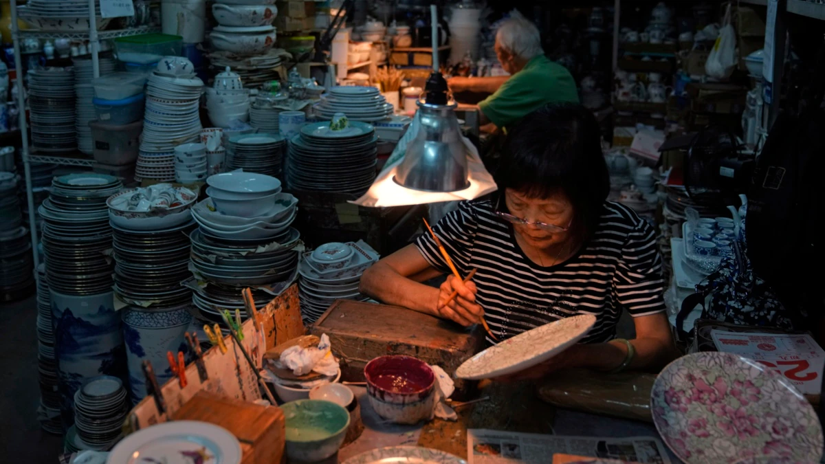 Joseph Tso is the third-generation owner of the factory. Tso and his small team are among the few people in Hong Kong who are experts at the traditional method of painting “guangcai,” or Canton porcelain.