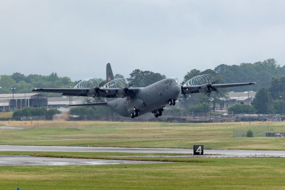 A new C-130J Super Hercules takes off from the Lockheed Martin facility in Marietta, Ga. on May 27 last year. The historic aircraft delivery to Little Rock AFB, Ark. served as the final C-130J for the 19th Airlift Wing and Air Mobility Command (Lockheed Martin Photo)