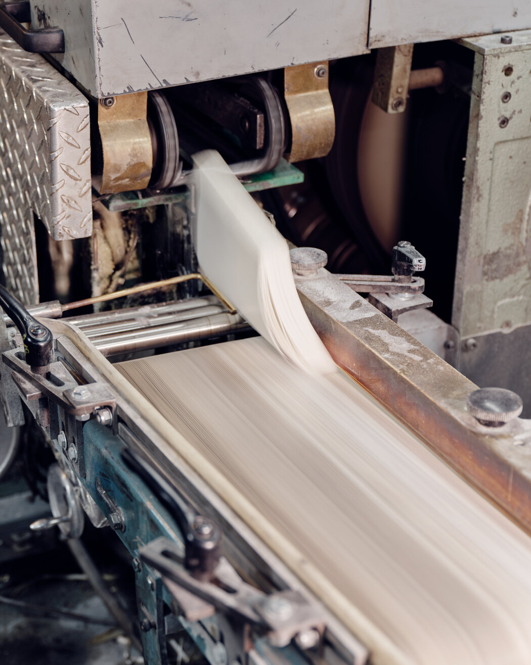 After the books are bound and glued, they head to a machine called the backer, which readies the book for the cardboard cover to be attached.