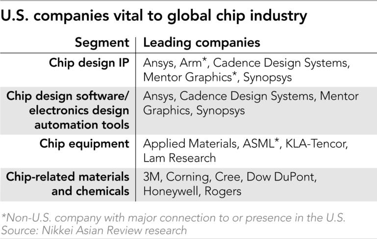 TAIPEI/PALO ALTO, U.S. — The latest Washington crackdown on Huawei Technologies reveals how a handful of U.S. companies, dominating a few key areas of the global chipmaking industry, hold the key to choking off supplies to the Chinese tech titan.