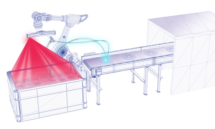 Among these are tasks that require hand-eye coordination — that is, mounting a 3D-vision system directly onto the robotic arm. Traditionally, the robot needed to stop moving to make a high-quality 3D scan. This is not necessary anymore, which significantly shortens cycle times and increases productivity and efficiency.
