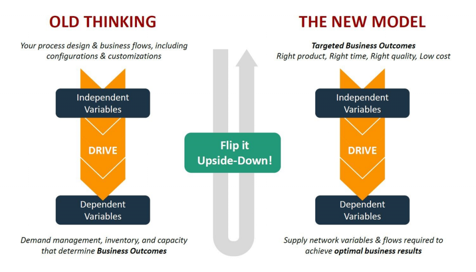 Under the old model, these hardened process designs, business flows, and customizations determined (and limited) how you operated and determined your business outcomes. In the new model, let’s define the targeted business outcomes that we want – the right product with the right quality with the right service levels at the lowest cost – and then determine the supply network business practices necessary to achieve optimal results.