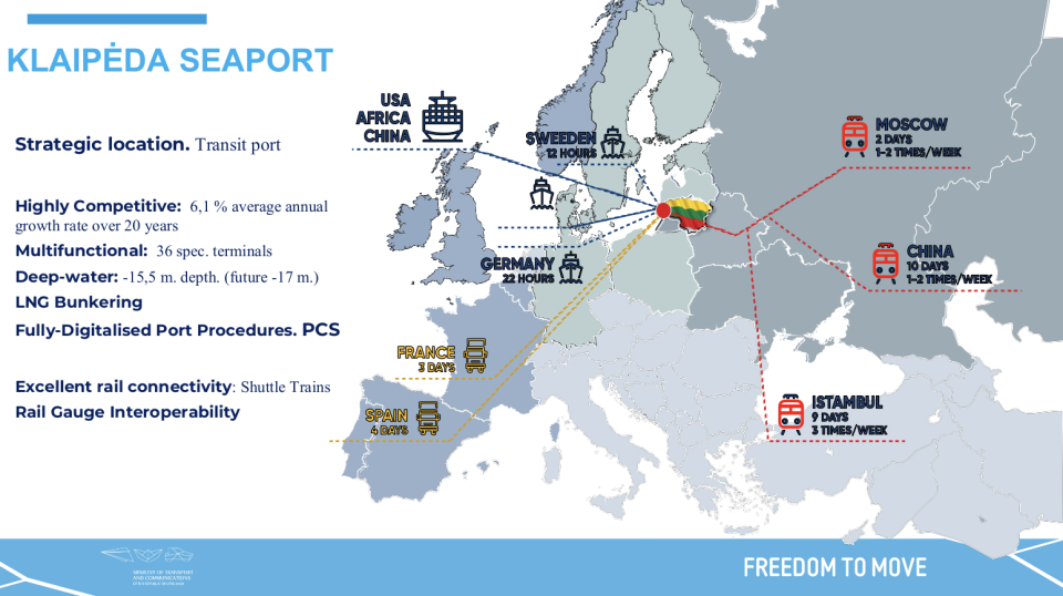 Since Kaunas is mentioned, it is important to say that the intermodal terminal is the latest addition to Lithuania’s rail freight portfolio. The terminal started operations last July with the first rail link from Tilburg in the Netherlands. The Lithuanian Railways cooperate with the GVT Group of Logistics for this service. Their partnership confirms the country’s potential since GVT wants to use Kaunas as a gateway to Russia and beyond.