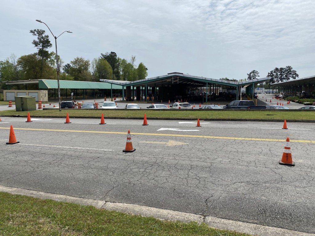Georgia opened four mass vaccination sites that same month, including one in Macon. The drive through style sites administered the Pfizer vaccine. Governor Brian Kemp visited the Macon site at the State Farmers Market, several days before it opened.