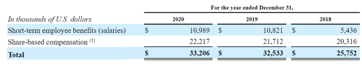 Annual remuneration is a combination of salary, shares and/or options, performance-based cash payments and other cash and benefits. For shares and options, the equity value is estimated at the time of the award and may change significantly by the time shares are cashed in.