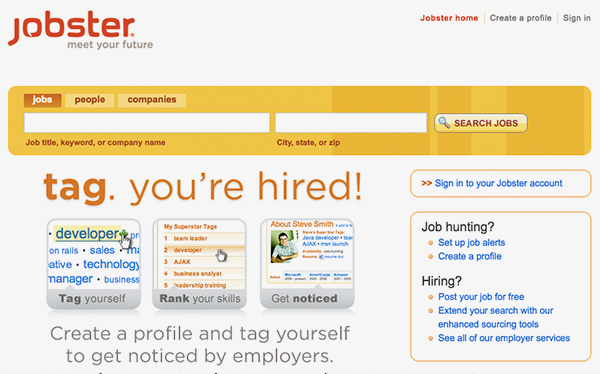 A screenshot of Jobster.com, circa 2008 (Wayback Machine)