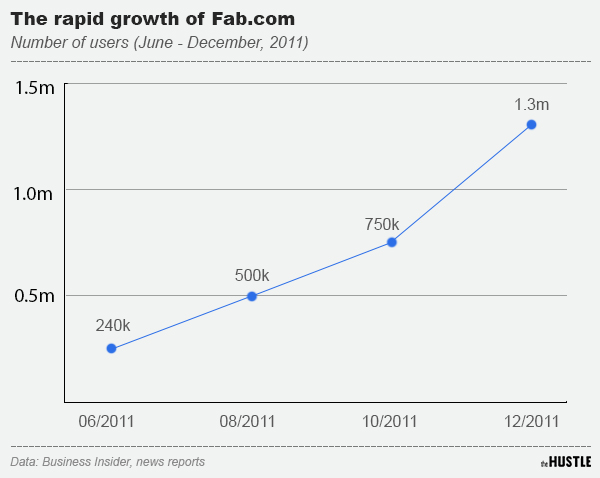 Fab reached 1m users in just 5 months — faster than goliaths like Facebook, Twitter, and Groupon. The company began to generate buzz as one of the “fastest-growing startups in the world.”