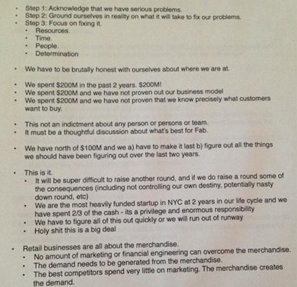 An excerpt from a letter circulated by Goldberg to Fab staff (Business Insider)