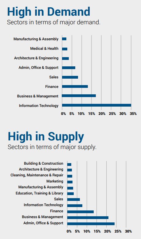 “When looking at active job seekers across various sectors, areas of high supply correlate closely to areas of high demand – however, supply outstrips demand in some areas, leading to a competitive environment for job seekers,” CareerJunction said.