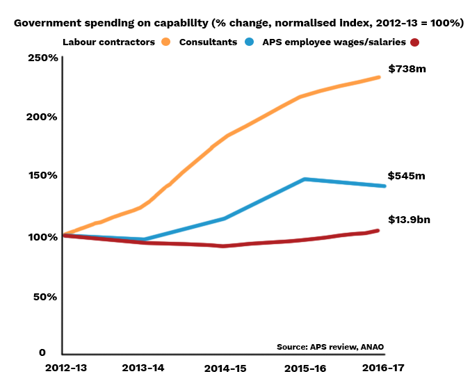 Seldom is Commonwealth business scrutinised like the nexus of average staffing level caps and growth in external consulting since the Coalition won government in 2013; audit office reports, an inconclusive joint parliamentary inquiry and round after round of Senate estimates hearings have explored how much departments spend on consultants, and why.