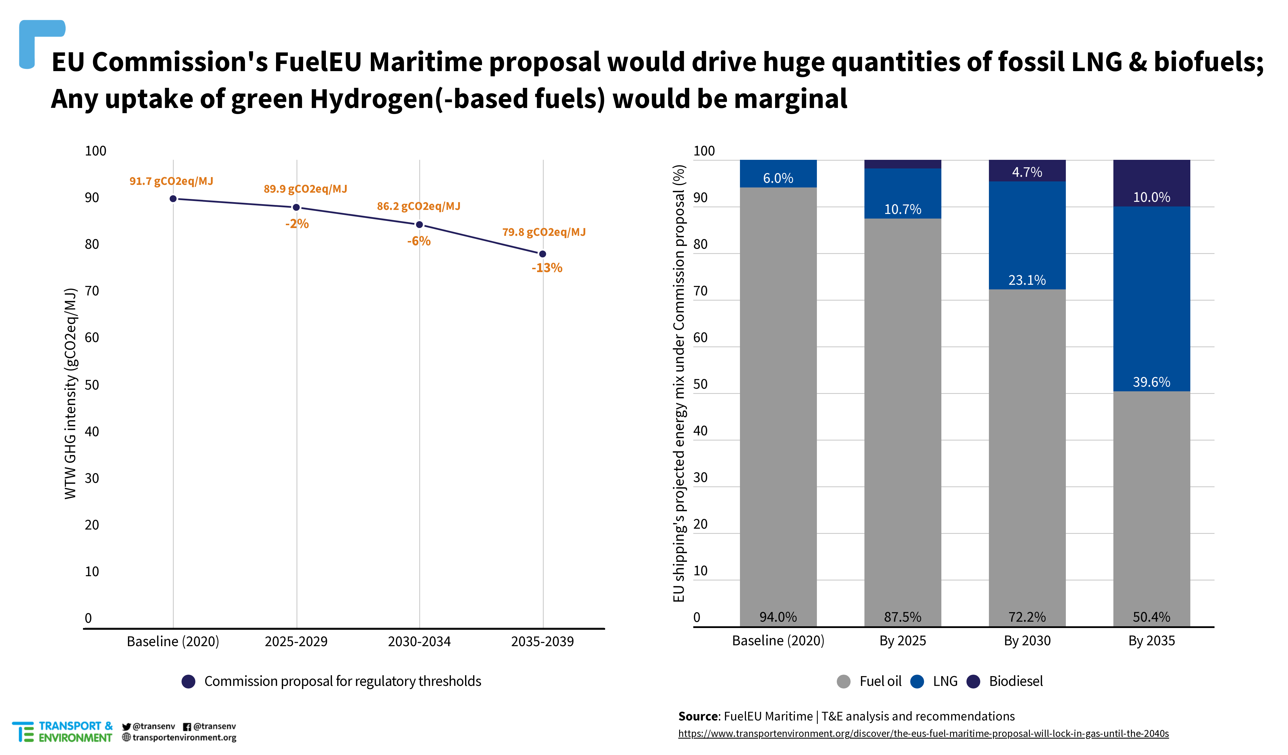 The inclusion of natural gas in the European Commission’s proposal on low-carbon shipping fuels is incompatible with the recommendations of the latest report by the Intergovernmental Panel on Climate Change (IPPC), writes Faig Abbasov. In three graphs, Abbasov sets out the case for a shift towards green hydrogen-based fuels in the maritime sector.