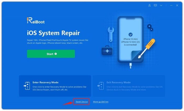 Step 1: ReiBoot may be downloaded and installed. Connect your device to your computer after launching ReiBoot and choose ‘Reset Device.’