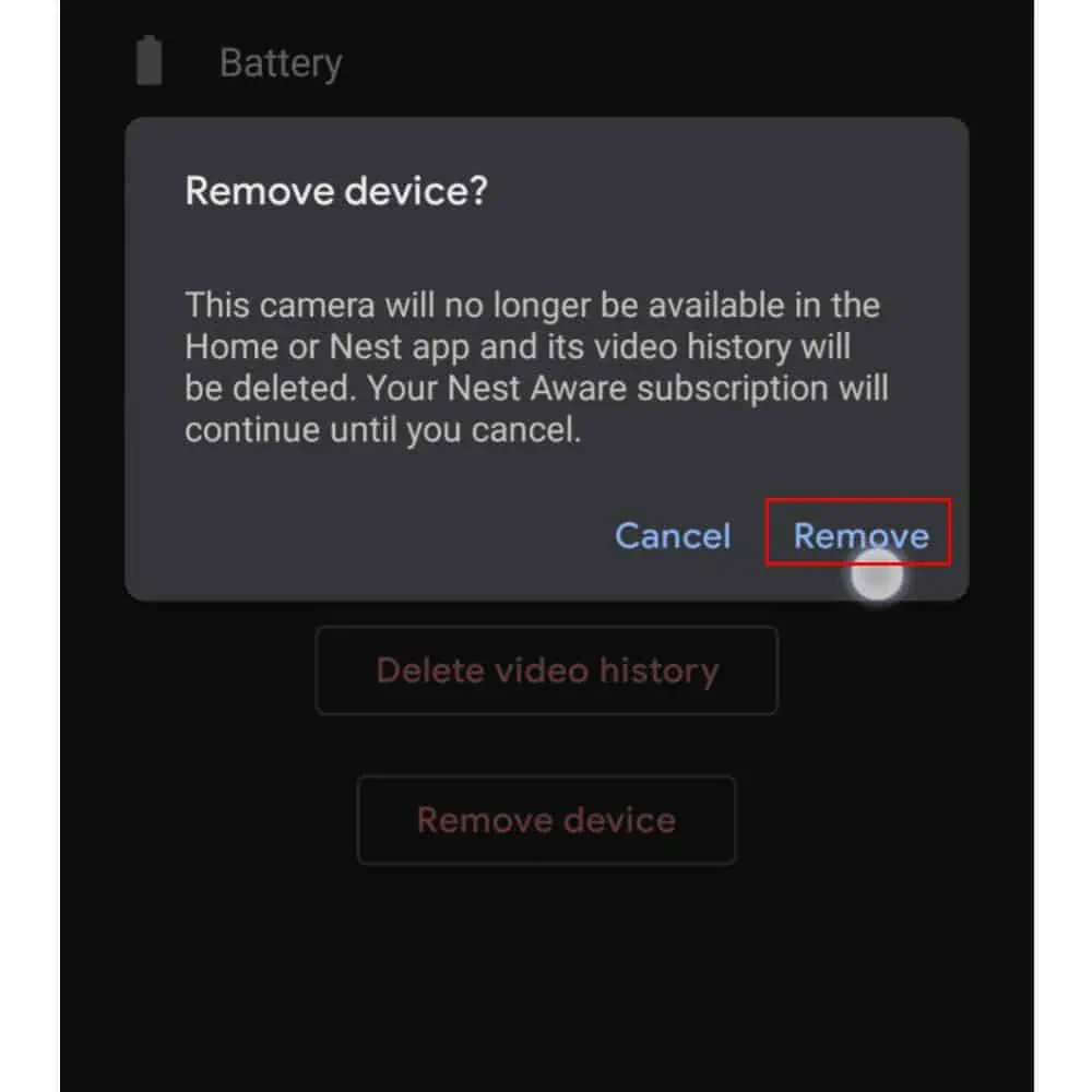 You’ll see a confirmation option. Select that option. Google Home or Nest will then remove your camera from Google smart home ecosystem. Now you can move on to fully factory resetting via the second set of steps below.