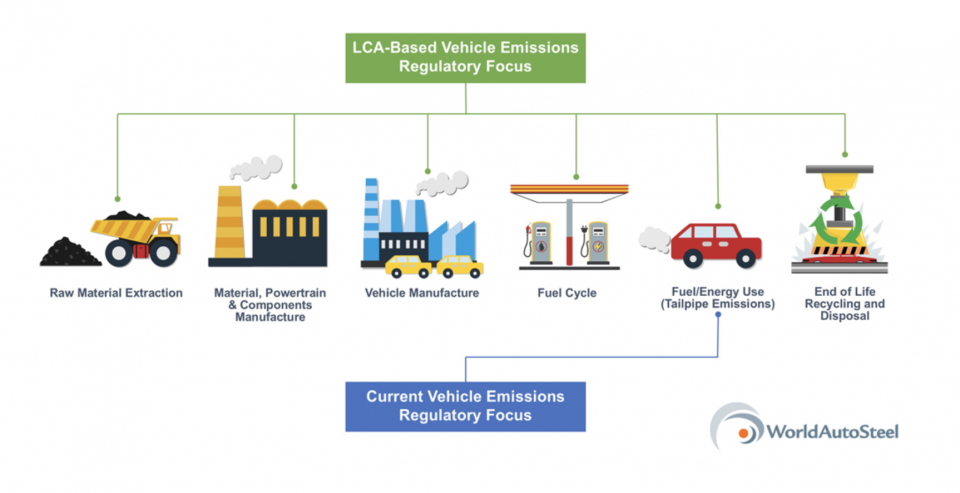 Consider the life cycle of a vehicle. The current US vehicle emissions regulatory framework only focuses on a car while in its ‘fuel/energy use’ phase and does not address the emissions generated throughout its complete life cycle; this is extensive and involves raw material extraction, powertrain and components manufacturing, vehicle assembly, fuel cycle/energy use and end-of-life recycling and disposal.