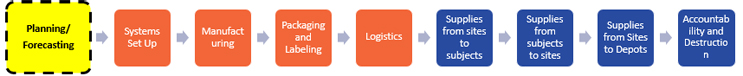 Therefore, the most appropriate approach for this demand issue is to really understand the expected enrollment rate and pattern by working closely with ClinOps and CRO partners. At any given point, there are three or four colleagues working closely with the site who have a plethora of information that would inform site enrollment and pace. The feasibility data, site location, site type (private clinic or hospital), foot traffic, whether the principal investigator is a key opinion leader in the field, previous experience, number of days per week dedicated to trials – all of these specs can indicate the expected demand for the site. With the pandemic behind us, sites can be asked if they plan to only open one day a week, or if they need drug product shipped out daily, etc. Working with the study leads and CRAs that have direct access to the site and this information, you can categorize sites as high, medium, or low enrollers. Generate demand curves over time and update the demand curves based on real data throughout the trial. Based upon those, you can set appropriate floors and ceilings that will set the sites up for success.