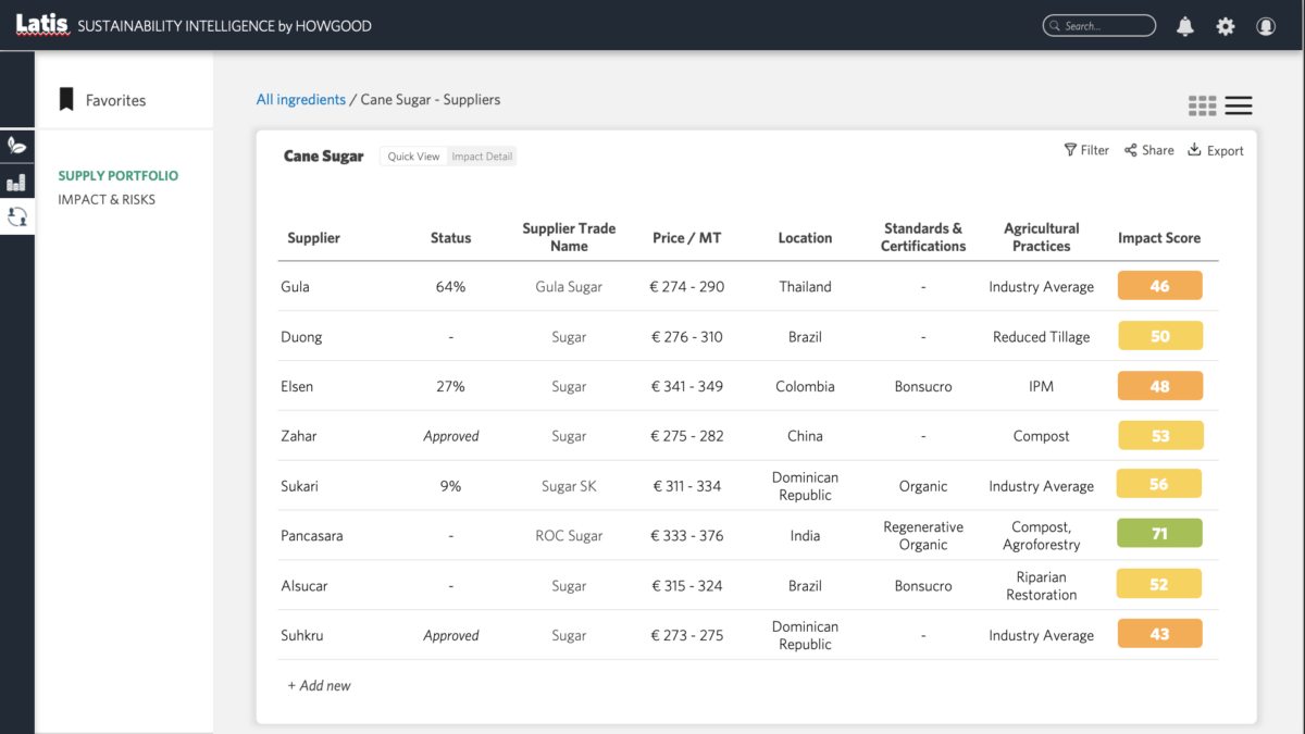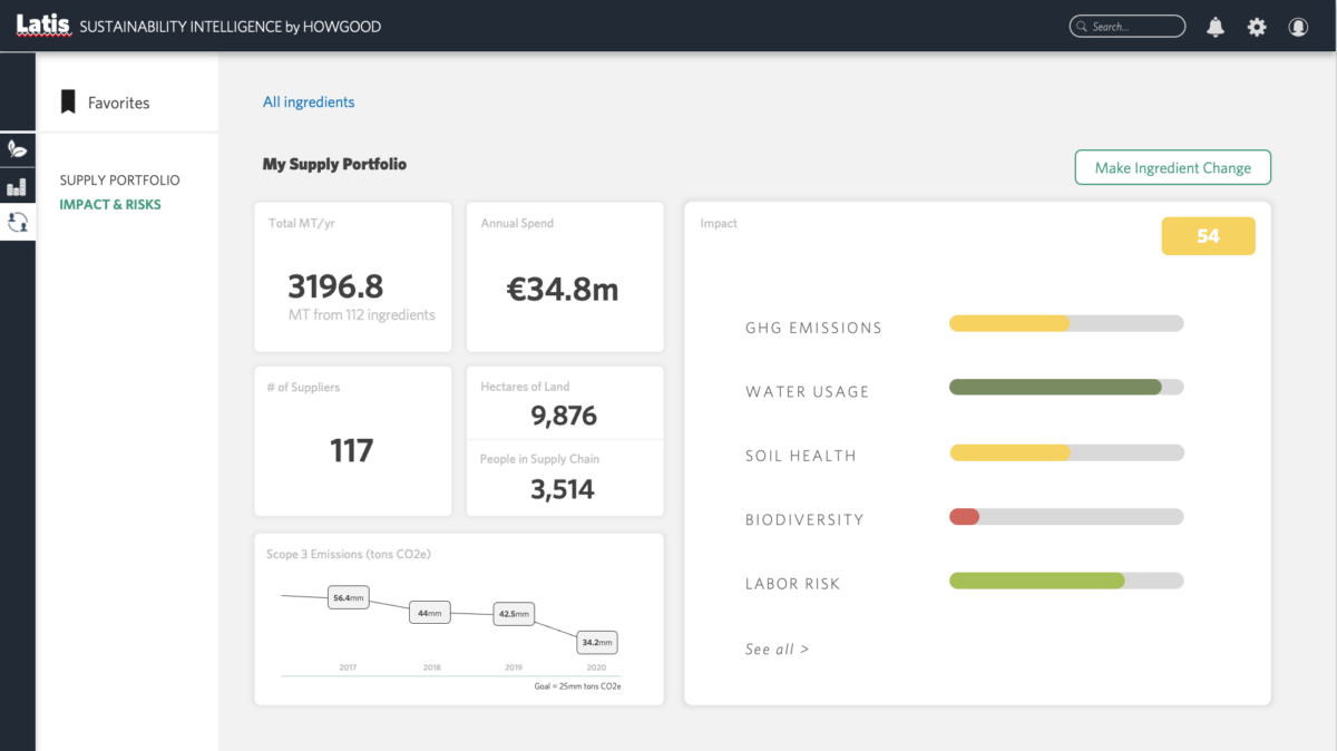 “As the food industry grapples with calls to improve transparency and reduce its footprint, the procurement module boosts the efficacy of procurement teams by providing an easy-to-use platform for buyers to identify the ingredients most negatively impacting their portfolios, discover and compare new suppliers offering more sustainably sourced ingredients, and demonstrate the impact of any supplier change through an advanced scenario-planning interface,” Soloviev said.