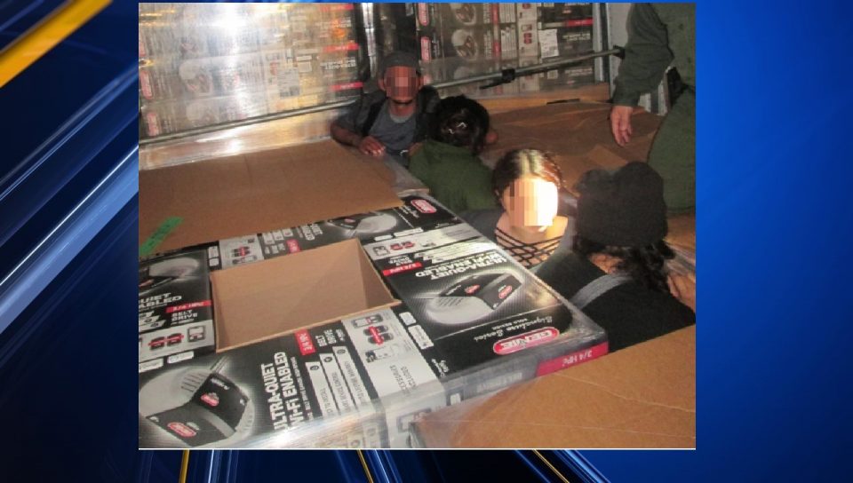 The following day around 3 a.m., four migrants from El Salvador were found hiding between pallets in a Freightliner truck hauling a trailer at the Javier Vega Jr. Border Patrol Checkpoint. The vehicle had been referred to secondary inspection following a K9 alert. There was no way the migrants could have exited the trailer on their own, due to a metal wire that was holding the doors together from the outside.