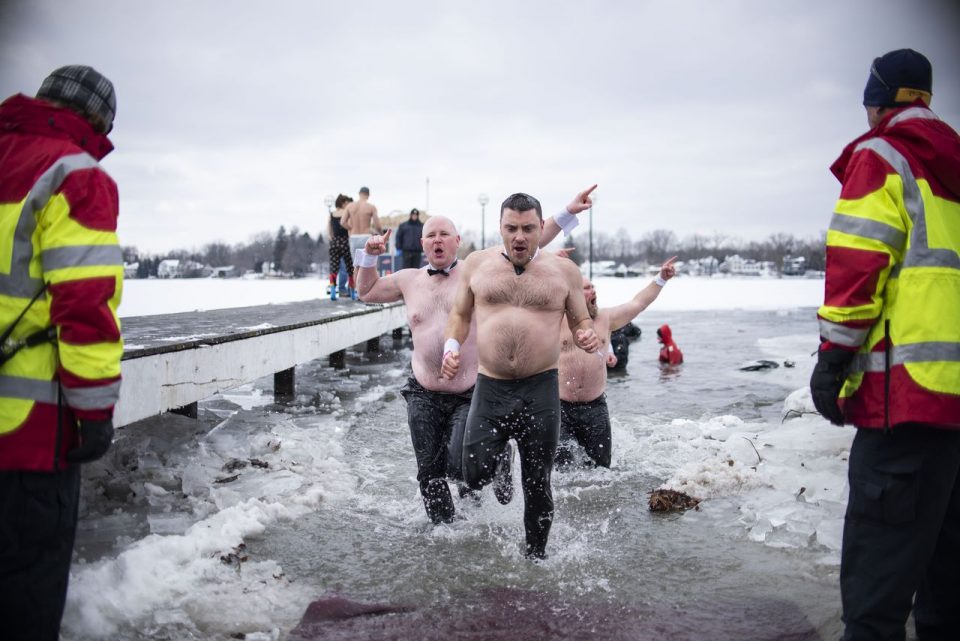 See jumpers take the Polar Plunge in frigid waters of Clark Lake