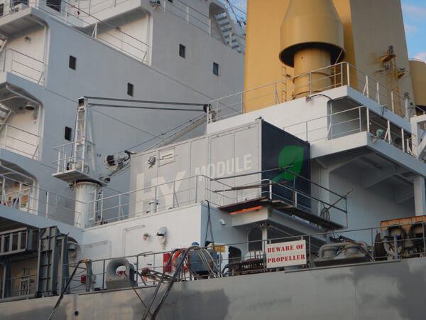 System was placed in a container on deck not to take up deck space (Marfin)