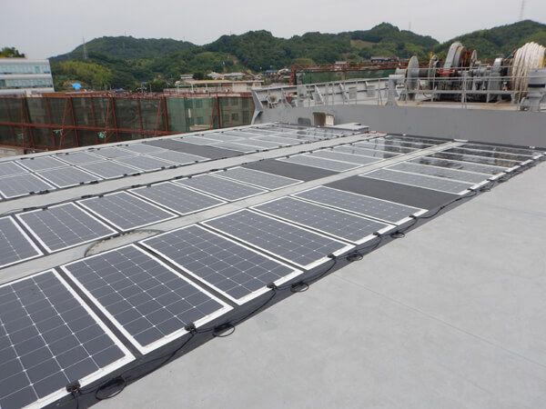 Solar panels fitted on the hatches on the bulker (Marfin)
