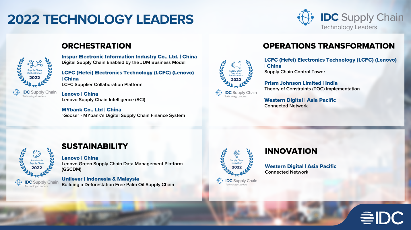 10 innovative projects identified for the IDC Asia/Pacific Supply Chain Recognition Program