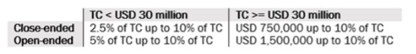 Unlike the AIF Regulations, the ‘skin-in-the-game’ (or FME contribution) requirement under the FME Regulations for Venture Capital Schemes and Restricted Schemes (including Special Situation Funds) depends on the target corpus (“TC”) of the scheme, and is capped as depicted below.