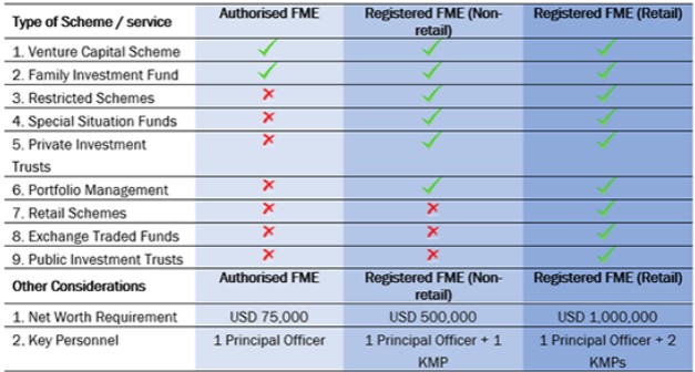 The FME Regulations classify FMEs into three (3) categories on a risk-based approach. Depending on the license obtained, the FME will be allowed to launch relevant schemes / carry out activities as described below.