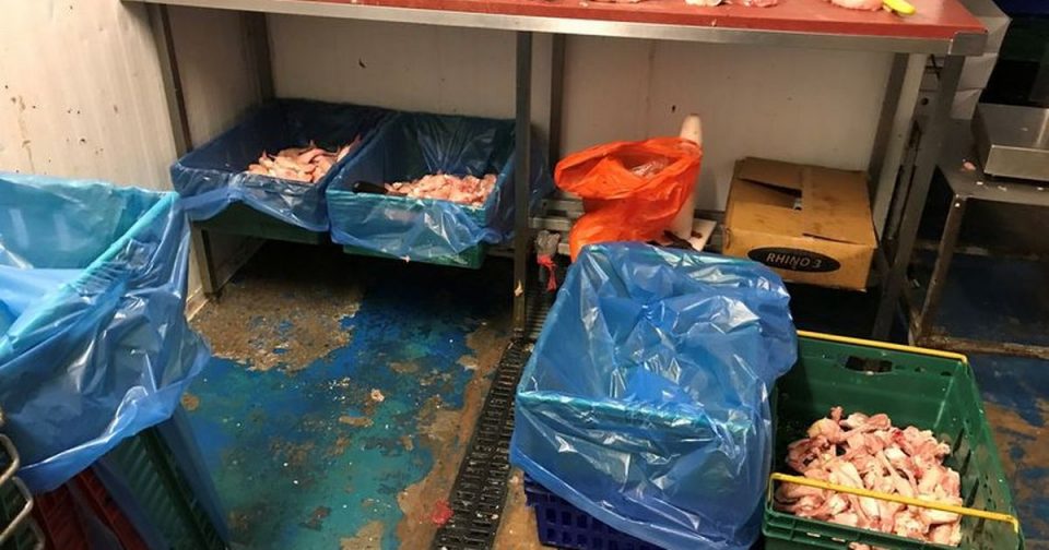 The illegal factory, which supplies chicken to takeaways and restaurants, had several damaged walls inside the walk-in chiller which allowed the internal insulation to be exposed.