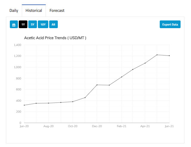 The company has recently updated the price trends of acetic acid. The price data is tied to a user-friendly graphing tool, which provides a wide range of functions. These functionalities of the tool include configuration of prices over the historical and forecast period for about 10 years, product movement across countries, customisation of currencies and units, and extraction of price data.