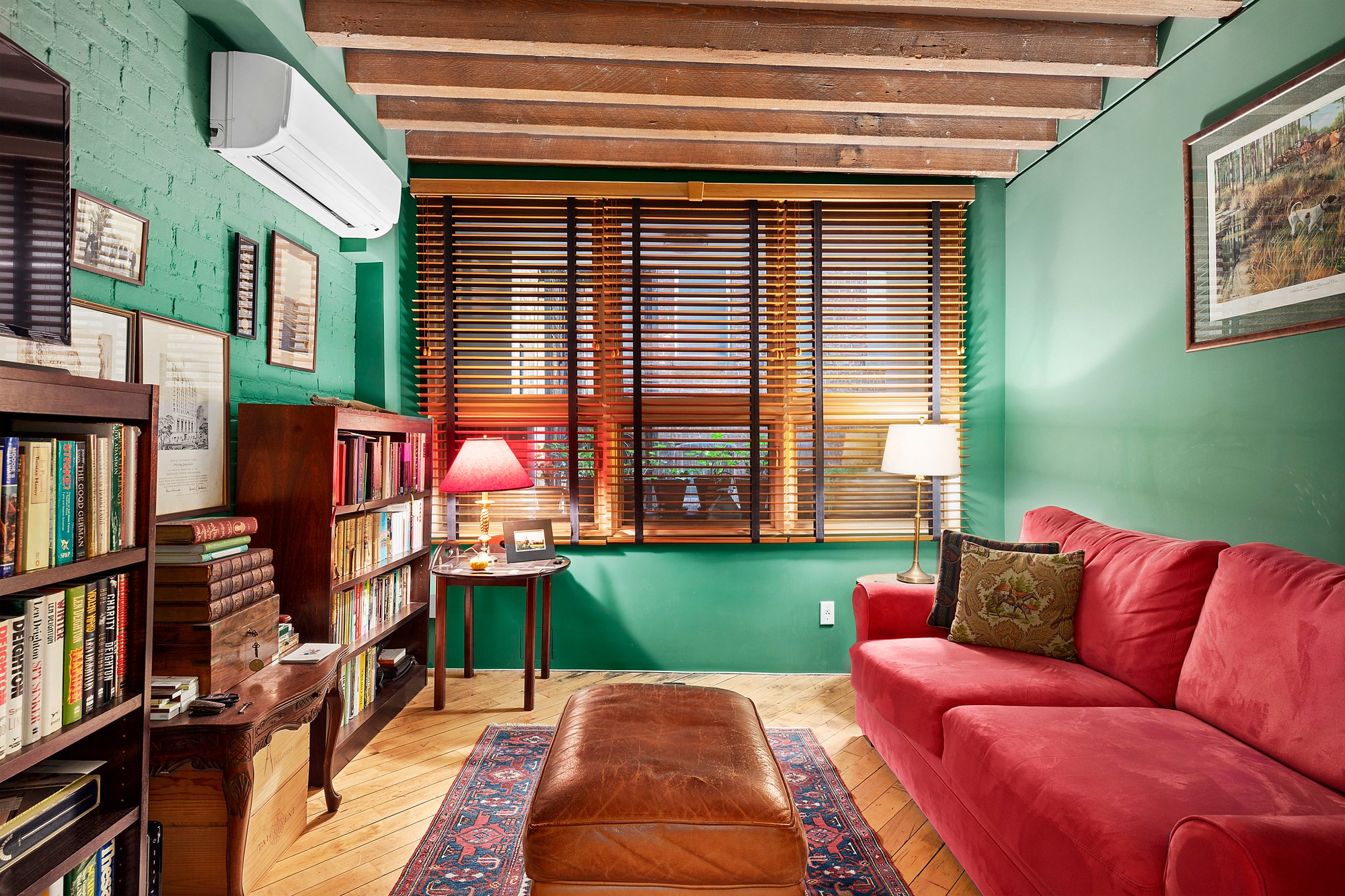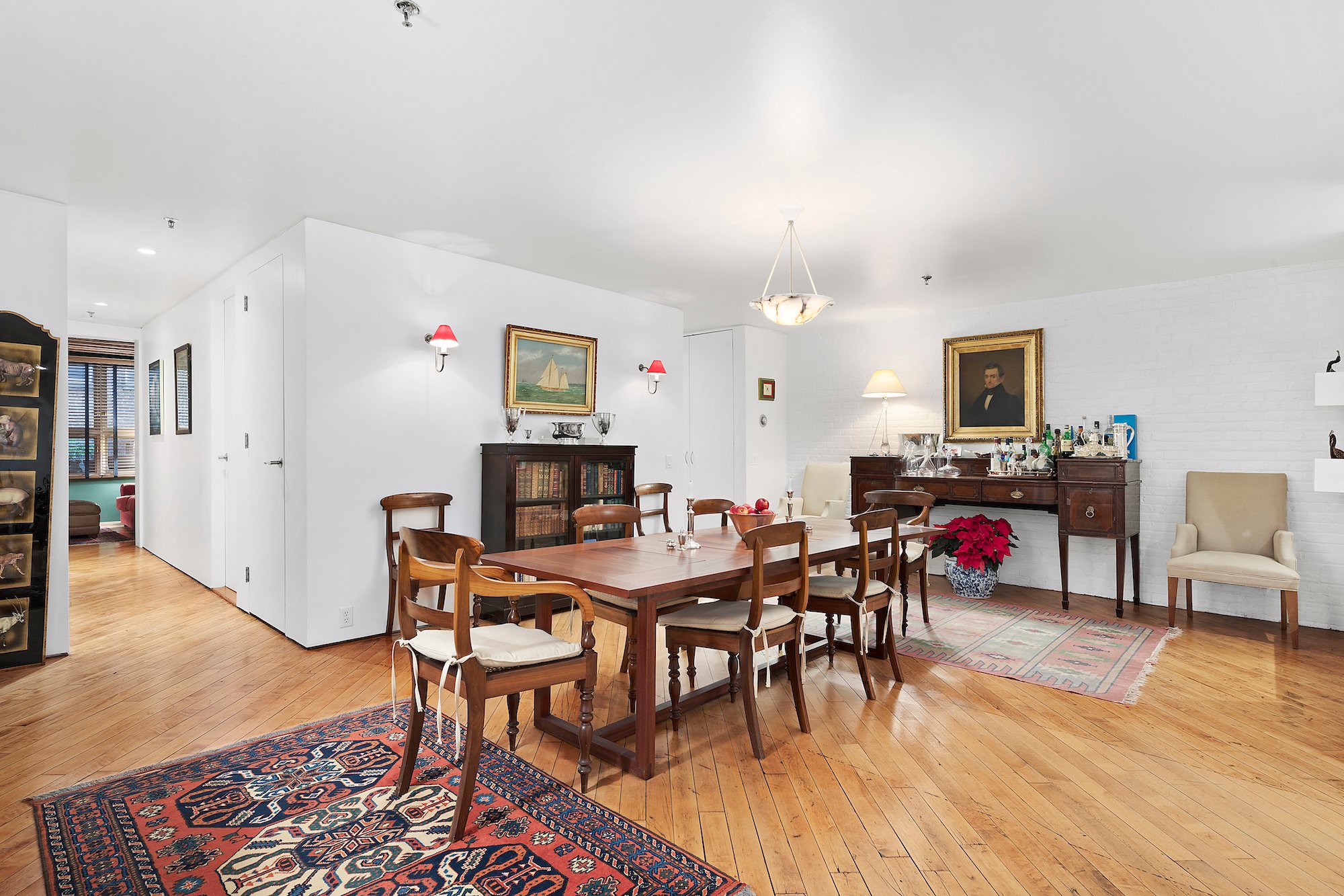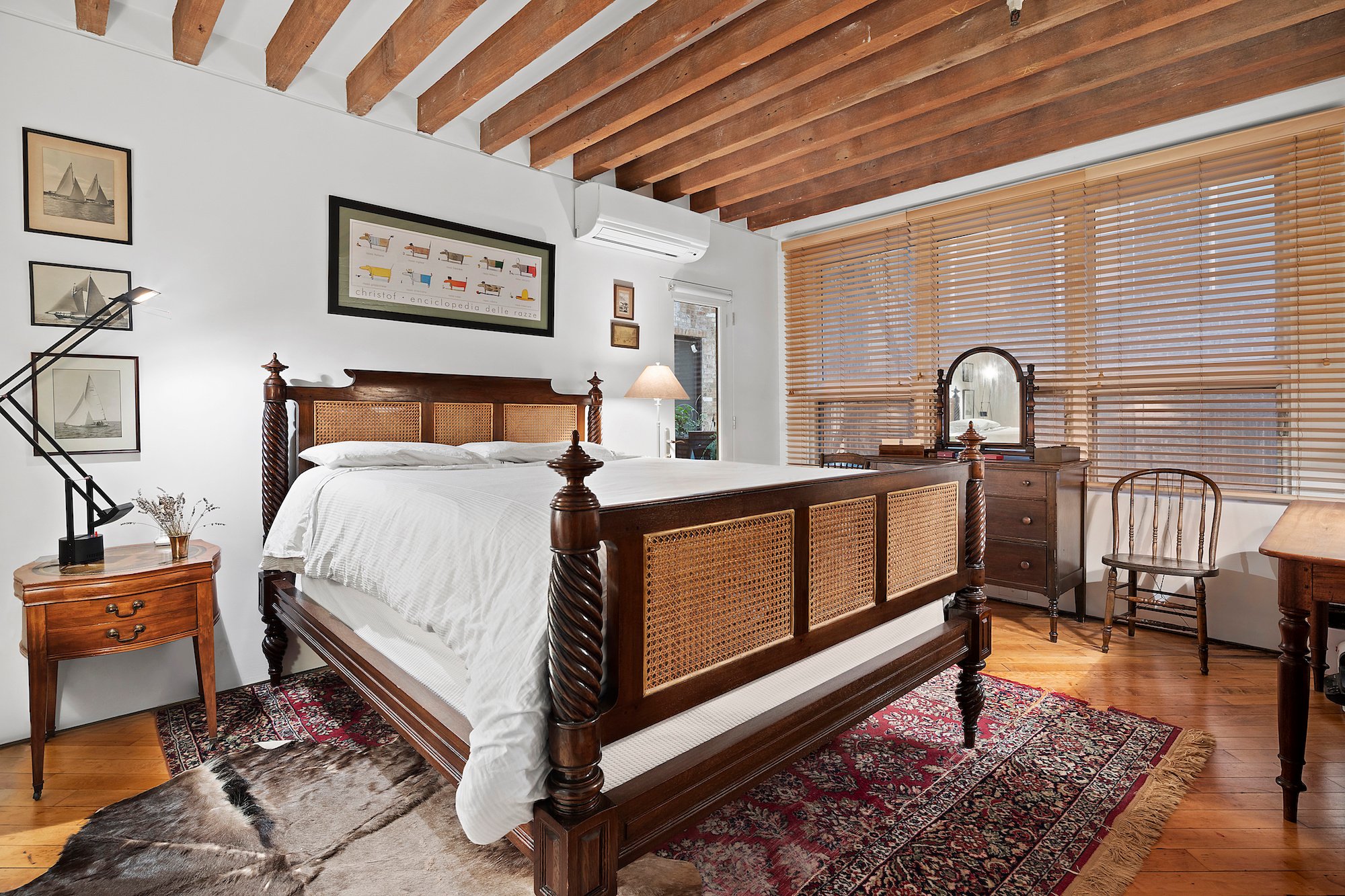 Located at 104 Charlton Street in the burgeoning Hudson Square area, this two-bedroom condo is located in a former printing factory and retains old-world details like wood-beamed ceilings, brick walls, and rustic wood floors. Though there are oversized windows, the 2,000-square-foot home has a cozy, cavernous feel. It also has a charming outdoor terrace, and it’s asking $2,325,000.