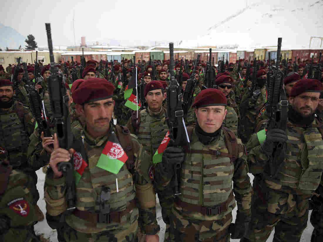 Afghan Army commandos attend their graduation ceremony after a 3 1/2-month training program, at the Commando Training Center on the outskirts of Kabul, Afghanistan, on Monday.