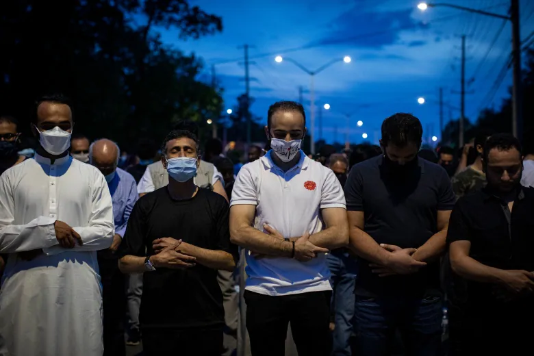 At a public funeral on June 13, mourners filled a parking lot at the Islamic Centre of Southwest Ontario and spilled over onto an adjacent soccer field to listen, pray and say goodbye.