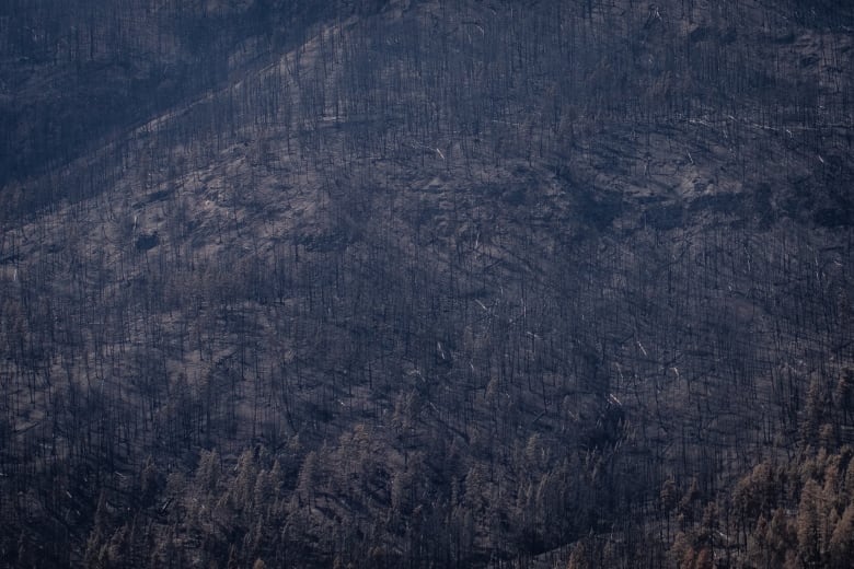 A burned hillside near Monte Lake, B.C., on Sept. 1.