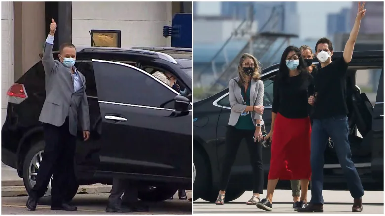 Canadians Michael Spavor, left, and Michael Kovrig — who were detained in China in what is widely considered a retaliatory act after Meng’s arrest in Vancouver in December 2018 at the U.S.’s request — were freed and flown back to Canada on Sept. 25.