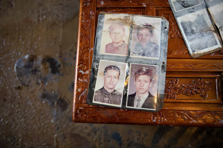 Family photos in Rhonda Warner’s home, saved from the flooding in Princeton, are seen Nov. 16.