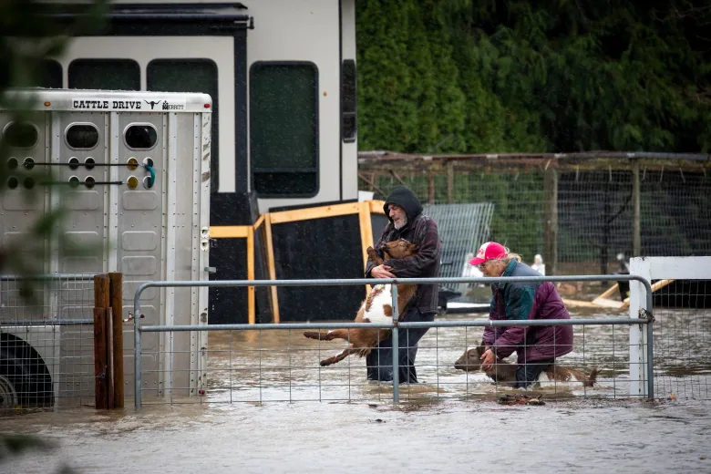 The hardest-hit communities included Abbotsford, Merritt and Princeton. Here, farmers carry their livestock out of a flooded barn in the Sumas Prairie area in the eastern portion of Abbotsford.