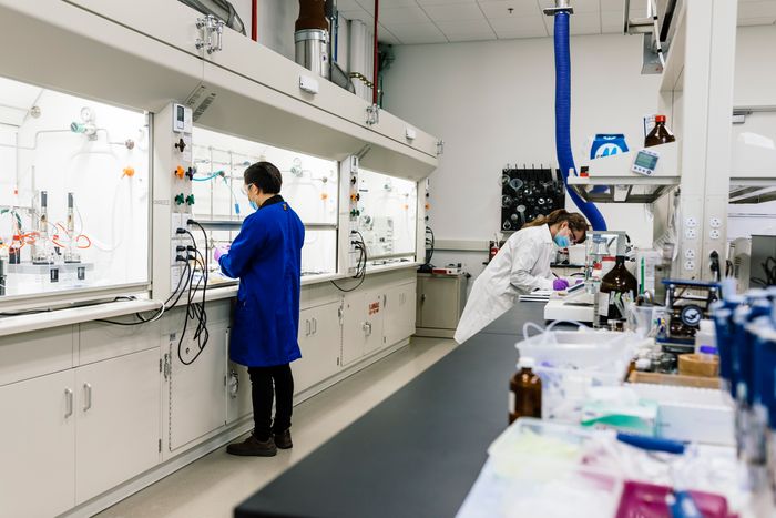 Scientists at Argonne National Laboratory in Lemont, Ill., develop prototype electrodes and cells in a dry room.