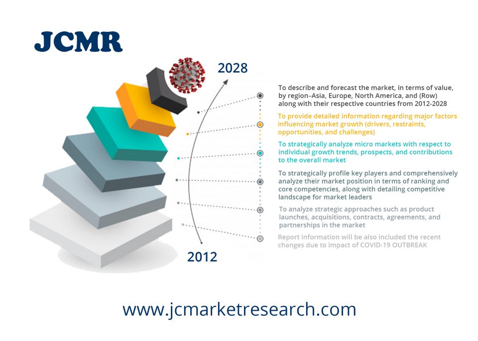 JCMR global research and market intelligence consulting organization is uniquely positioned to not only identify growth opportunities but to also empower and inspire you to create visionary growth strategies for futures, enabled by our extraordinary depth and breadth of thought leadership, research, tools, events and experience that assist you for making goals into a reality. Our understanding of the interplay between industry convergence, Mega Trends, technologies and market trends provides our clients with new business models and expansion opportunities. We are focused on identifying the “Accurate Forecast” in every industry we cover so our clients can reap the benefits of being early market entrants and can accomplish their “Goals & Objectives”.