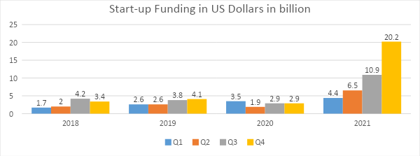 The Indian startup ecosystem is not just growing but making and breaking new records. The chart below shows the investment that has flowed in over the last few years.