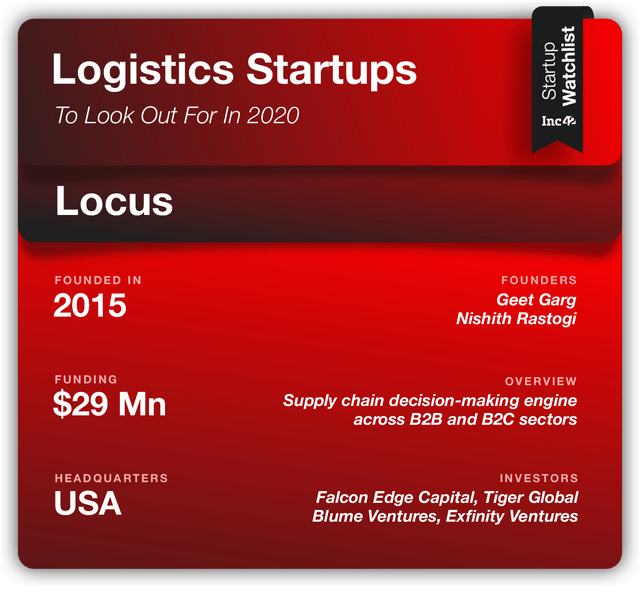 With a customer base of over 40 enterprises, including the likes of Blue Dart, Bigbasket, Myntra, Unilever, Tata Sky, Urban Ladder, and Lenskart, Locus is looking to bring efficiencies in the logistics sector using geocoding, deep machine learning and proprietary algorithms. It offers smart logistics solutions like route optimisation, real-time tracking, insights, beat optimisation, efficient warehouse management, vehicle allocation, and utilisation.
