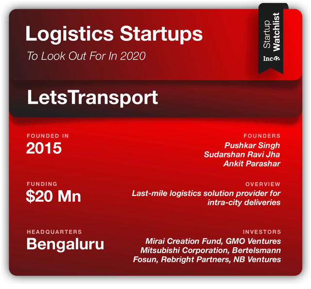 The startup was founded in 2015 by Pushkar Singh, Sudarshan Ravi Jha, and Ankit Parashar. Letstransport is headquartered in Bengaluru and registered a revenue of INR 47.59 Cr. in FY18 as per filings on Tofler. The startup believes that the $30 Bn+ market opportunity, presence of more than 10 Mn light commercial vehicles and fragmentation along with the fact that more than 90% of vehicles are owned by individual driver-cum-owners is the biggest opportunity.