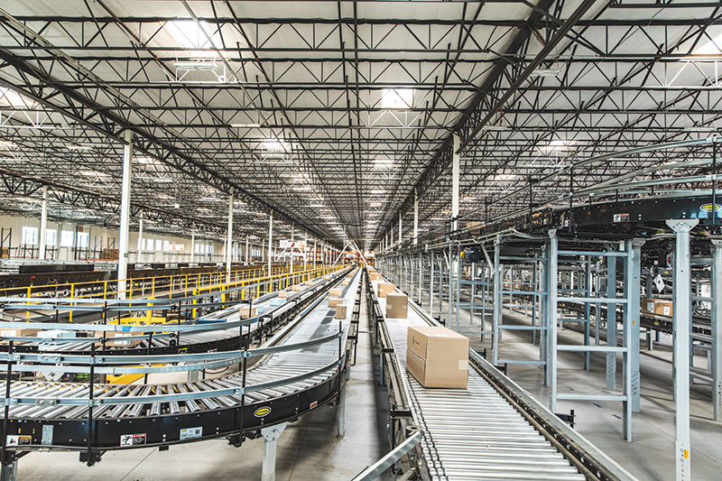 Single-line e-commerce orders are conveyed directly from the decasing area to consolidation, or shipping. Multi-line orders are conveyed to a smaller shelving unit area in the putwall area – but not included in the 2,200 locations in the putwall. Once all of the items for an order are in place, they are packed and inducted onto the shipping conveyor.
