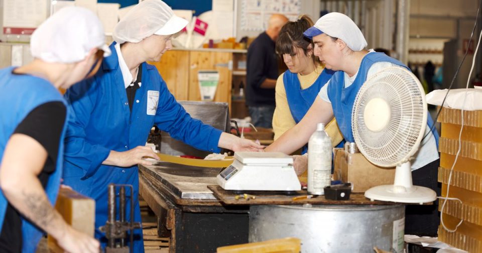 “It’s all cut by hand using wires and people lay them on top of each other to dry out, which is what they do everywhere as it’s the most effective method. The last stage is where we get a muslin cloth and individually wipe away any of the excess and then leave them out to dry, before they go upstairs to be packaged.