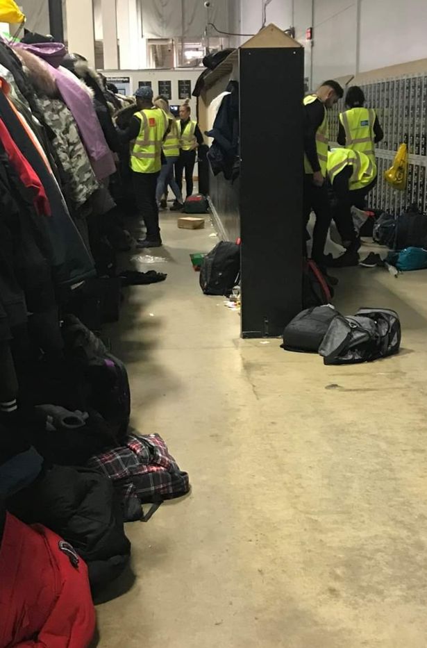 Pictures sent to the Manchester Evening News show workers gathered around, many standing less than two metres apart.