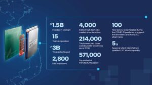 May 27, 2022 — Intel has recognized the contributions of its Vietnam site to alleviating constraints in the global semiconductor supply chain. Thanks to an innovative approach to processing substrates in its assembly and test factory, Intel delivered millions of additional units of chip production over the past year – meeting customer demand while the industry struggled to weather a shortage of this critical component.