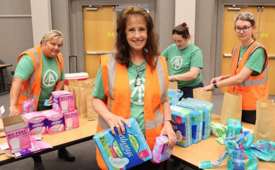 Employee volunteers at the International Paper Pensacola Mill assembled more than 500 feminine care kits to fight period poverty. The local event benefited the Health and Hope Clinic and Pace Center for Girls.