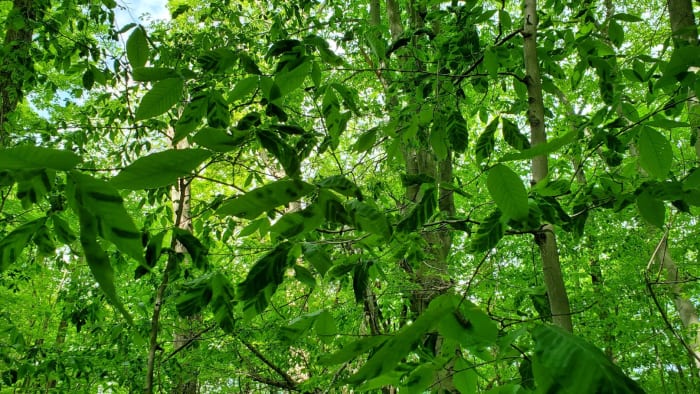 The owners of the land found stunted, odd-shaped leaves on young beech trees in a wooded area on their property.