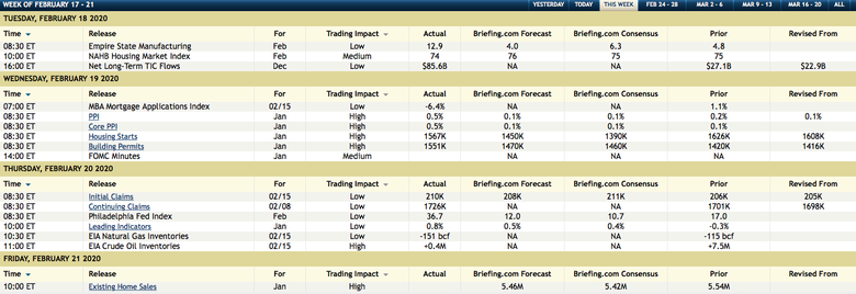 Shelter From the Storm: While domestic manufacturing might take a ding from the outbreak of COVID-19, the U.S. housing market might be one place that’s better able to weather the fallout from the epidemic. Low interest rates have been one thing helping demand for housing, and the coronavirus-spurred flight to U.S. government debt could help keep rates low. Further, it seems likely that if the outbreak begins to truly dent economic growth around the globe and in the United States, the Fed would at least consider lowering its benchmark rate. The latest numbers on existing home sales are scheduled for release a little later this morning, with January sales expected to come in at a seasonally-adjusted 5.42 million, according to Briefing.com.