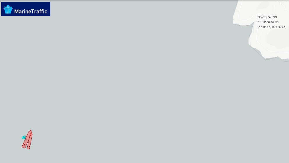 AIS signals show the two tankers alongside in the anchorage off the Greek island of Evia (courtesy of Marine Traffic)