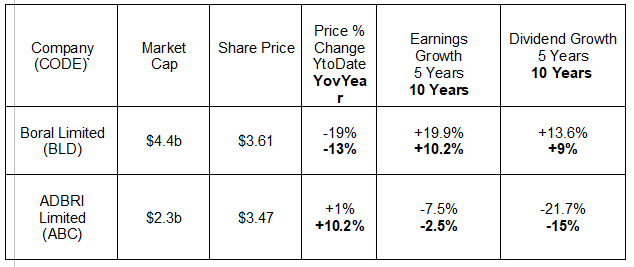 Perhaps for that reason, Boral has outperformed 19.2%in both earnings and dividend growth.